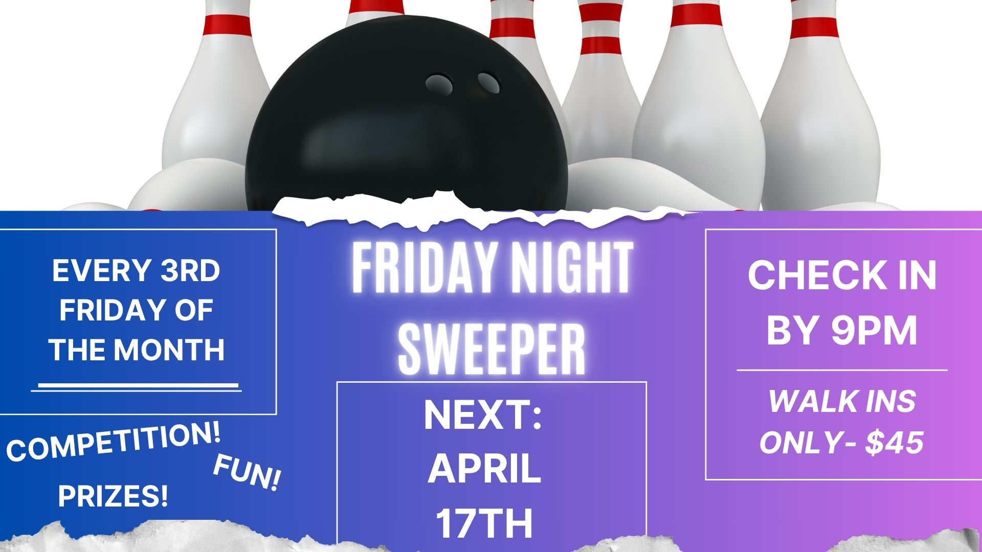 Monthly Sweepers! Every 3rd Friday of the month. Walk-In registration only, $45 Buy In. Starts after 9pm